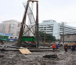 我国城市地铁系统建设发展至今,将近50年的历史,最初只有北京地铁40多公里的运营线路,自20世纪90年代以来,又有上海、广州等城市建成了现代化的新型地铁项目,截至2013年底,我国累计有19个城市建成投运城轨线路87条,运营里程2539公里。在2539公里运营里程中,地铁2074公里,占总里程的81.7%;轻轨192公里,占总里程的7.6%;单轨75公里,占总里程的3.0%;现代有轨电车100公里,占总里程的3.9%;磁浮交通30公里,占总里程的1.2%;市域快轨67公里,占总里程的2.6%。各种轨道交通方式中,地铁造价最高,有轨电车每公里造价2000万元左右,轻轨每公里造价2亿元,地铁每公里造价5亿元甚至更多。据了解,地铁建设总投资的10%~20%的资金都会用于工程设备购买。盾构机是修建地铁所需的主要设备,每台直径11米以上的盾构机价格大概为1亿元左右,而使用寿命一般仅为10公里。大量地下隧道的开挖,需要采用现代先进施工技术的盾构掘进法来完成。然而,当前盾构技术的掘进适用范围,仅局限于地铁站区间隧道的工况条件,当遇到地铁车站同步施工时,盾构将被地铁站周围的钢筋混凝土护壁围护结构所阻挡而无法通过,只能频繁进出竖井,待重新进入区间再行掘进施工。这样不仅增加了工人的劳动强度和降低了工作效率,也带来了施工的危险性,同时也增加了隧道开挖的周期。